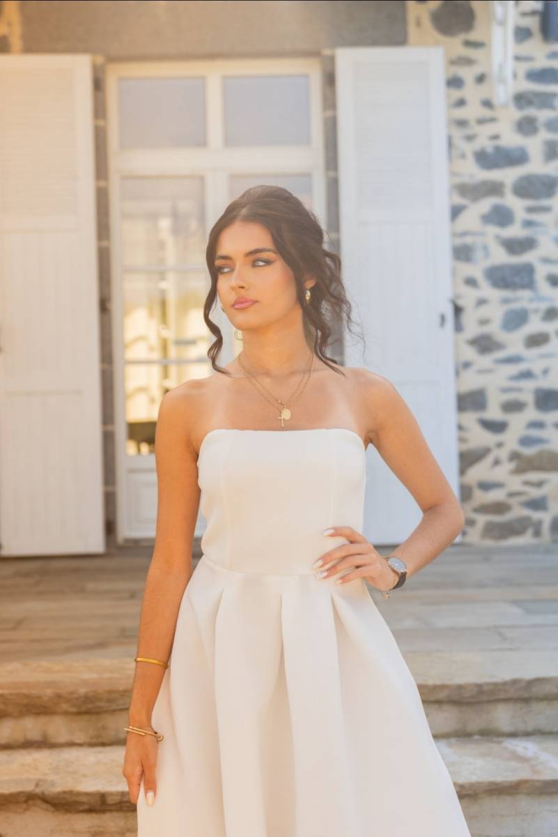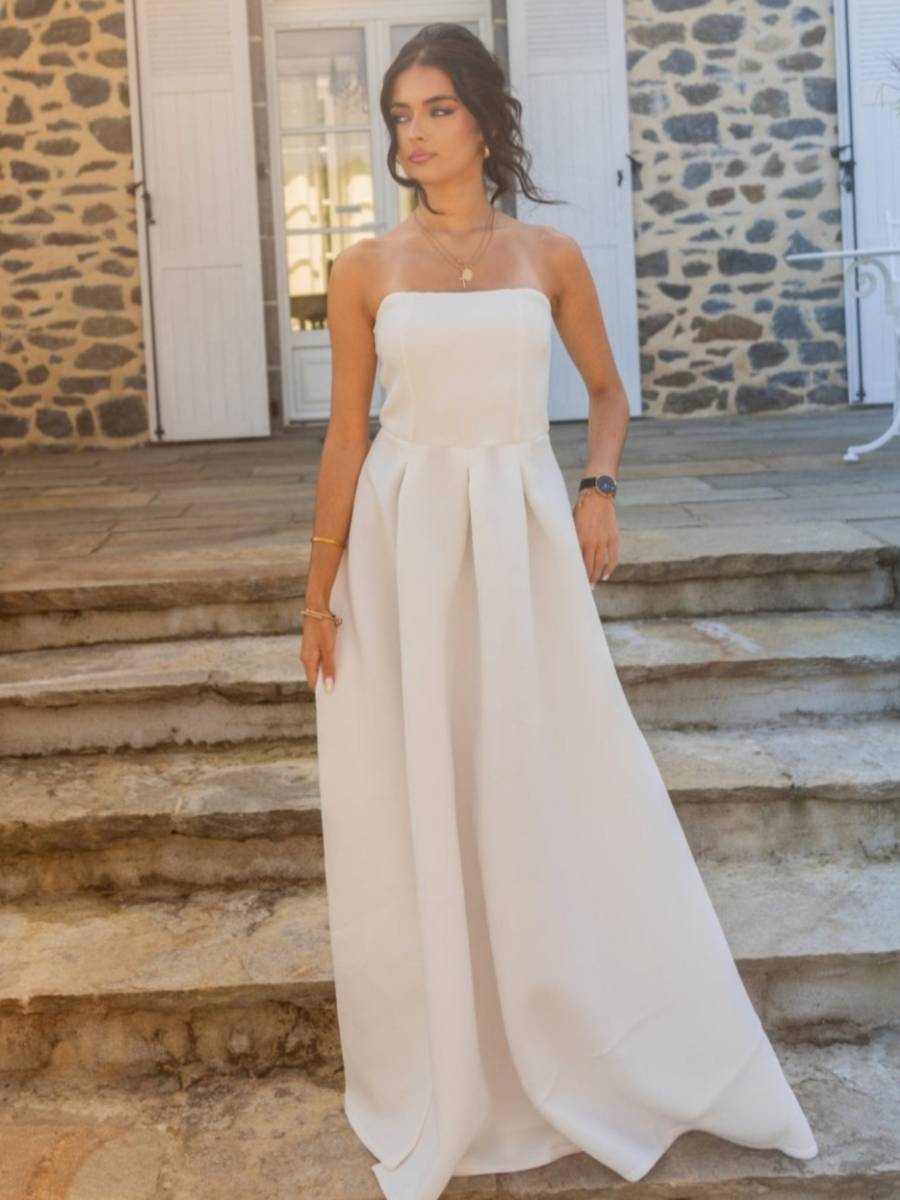 Découvrez l’élégance intemporelle avec cette robe longue blanche bustier, conçue pour sublimer votre silhouette lors des occasions spéciales. Sa coupe moderne sans bretelles met en valeur les épaules et le décolleté, tandis que la fente subtile sur la jambe apporte une touche sensuelle et sophistiquée. Confectionnée dans un tissu stretch et élastique, elle offre un confort exceptionnel tout en épousant parfaitement les formes. Le design minimaliste et chic en fait une pièce idéale pour un mariage, une soirée glamour ou un cocktail. Associez-la à des talons hauts et des bijoux délicats pour un look irrésistible et tendance.