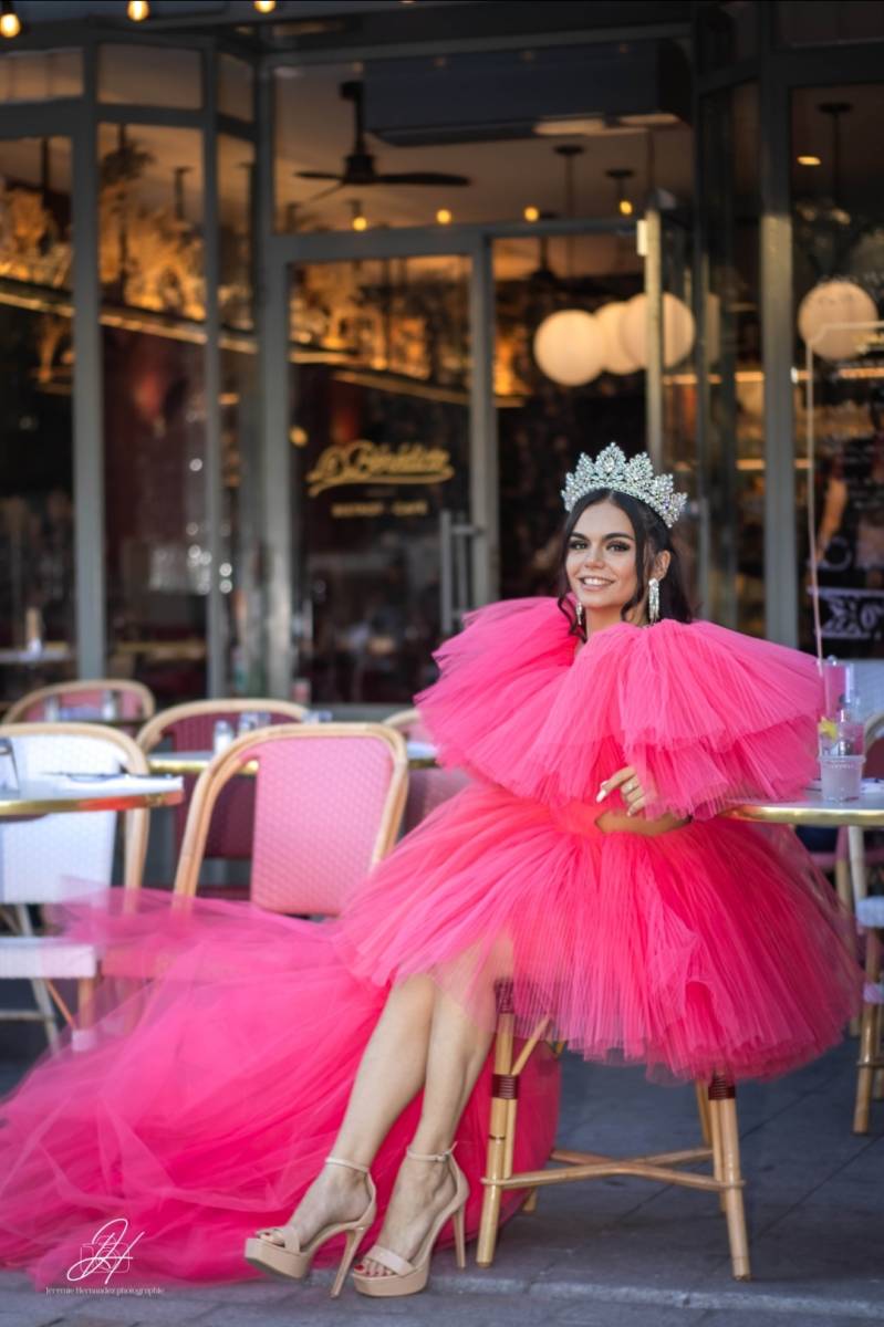 Osez l’extravagance avec cette robe haute couture rose fuchsia, conçue pour captiver tous les regards. Son design audacieux associe un volume spectaculaire en tulle et une traîne amovible qui apporte une allure royale et modulable selon vos envies. Les détails transparents sur les côtés ajoutent une touche sensuelle et moderne, tandis que la structure légère garantit confort et élégance. Parfaite pour un gala, un shooting photo ou un événement d’exception, cette robe incarne le glamour absolu et la sophistication. Associez-la à des talons nude et des bijoux pour un look inoubliable.